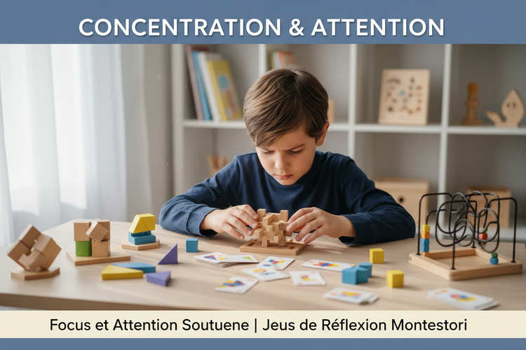 Maria Montessori a démontré que la concentration se développe naturellement quand l'enfant est engagé dans une activité qui l'intéresse, à son rythme, sans interruption. Nos jeux respectent ces principes : libre choix, manipulation concrète, progression individuelle et environnement calme.